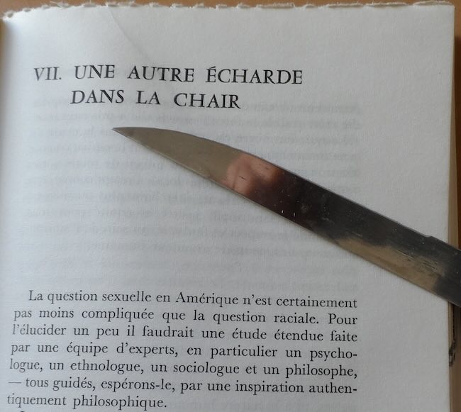 Aujourd’hui la bibliothèque d’Aix-en-Provence (?) a remis entre mes mains la lourde tâche de déflorer un livre. Ou 223 vieilles filles qui attendaient depuis 1958 qu’on daigne les déchirer.