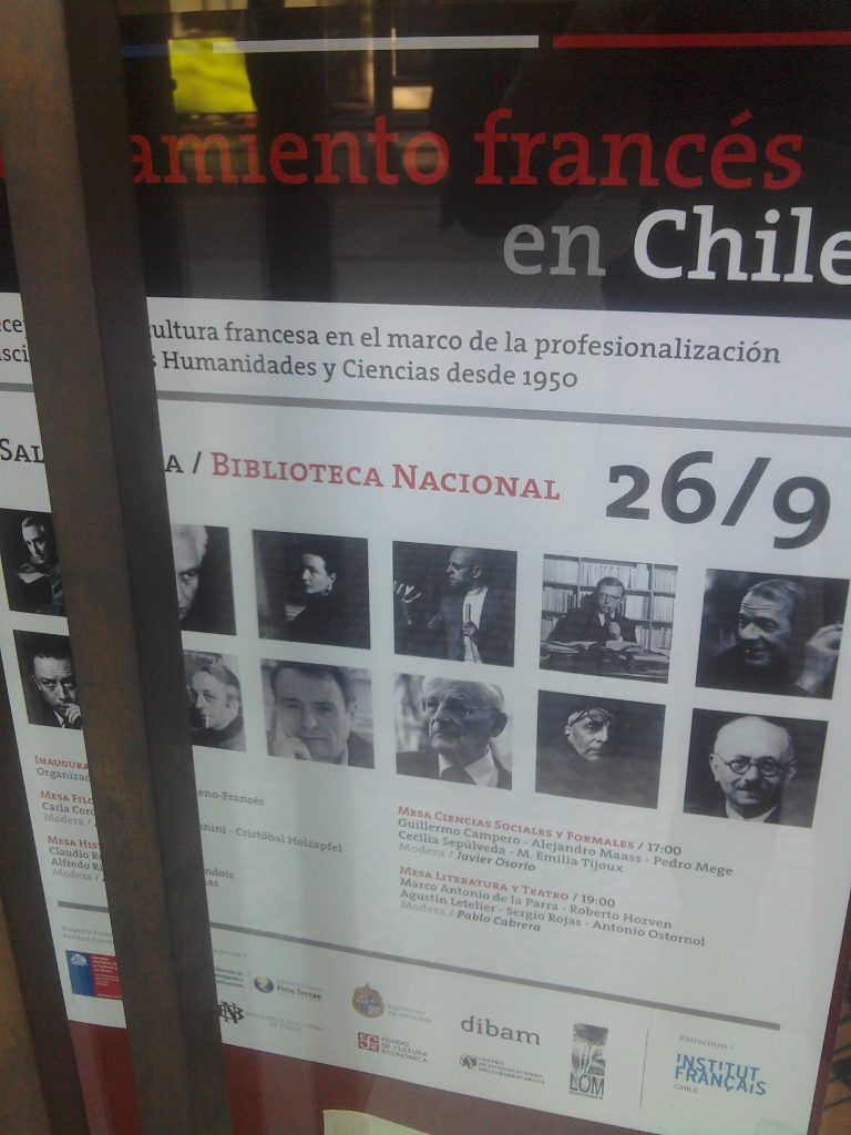 Je suis vraiment peiné, interloqué, atterré, de voir que la vacuité grandiloquente de nos penseurs français des années 70 (Bataille, Derrida, Lacan, Bourdieu, … on met Foucault et Deleuze à part) est super à la mode dans le petit monde des philosophes de l’Universidad de Chile. Je suis même péniblement déçu de retrouver les mêmes clones de gauchistes inconséquents par ici. Aiguillé par un professeur qui ne tient qu’une demi-heure avant de lancer ses premières charges gratuites car hors sujet contre le caractère totalitaire du néolibéralisme, je retrouve les mêmes discussions commençant par des références philosophiques académiques et terminant en café du commerce. Ce professeur, qui, au lieu d’animer de manière socratique une discussion pour en articuler les points de réflexion, distribue les bons points du haut de cette autorité qui n’a l’air rien de plus qu’un ramassis d’âneries documentées, ressemble tellement, lui aussi, à ceux que j’ai pu connaître en France… et j’apprends que la faculté est « jumelée » avec Paris VIII, le Vatican du marxisme français : tout s’explique.
